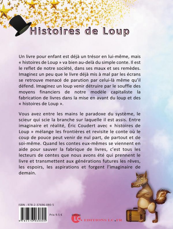Un livre pour enfant est déjà un trésor en lui-même, mais « histoires de Loup » va bien au delà du simple conte. Il est le reflet de notre société, dans ses maux et ses remèdes. Imaginez un peu que le livre déjà mis à mal par les écrans se retrouve menacé de parution par celui-là même qu’il défend. Imaginez un loup venir détruire par le souffle des moyens financiers de notre modèle capitaliste la maison d’éditions spécialisée dans la mise en avant du loup et des « histoires de Loup ».