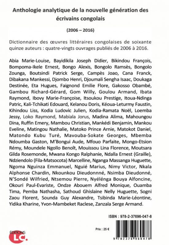 12,50€ – 25,00€Dictionnaire des œuvres littéraires congolaises de 75 auteurs: 80 ouvrages publiés de 2006 à 2016